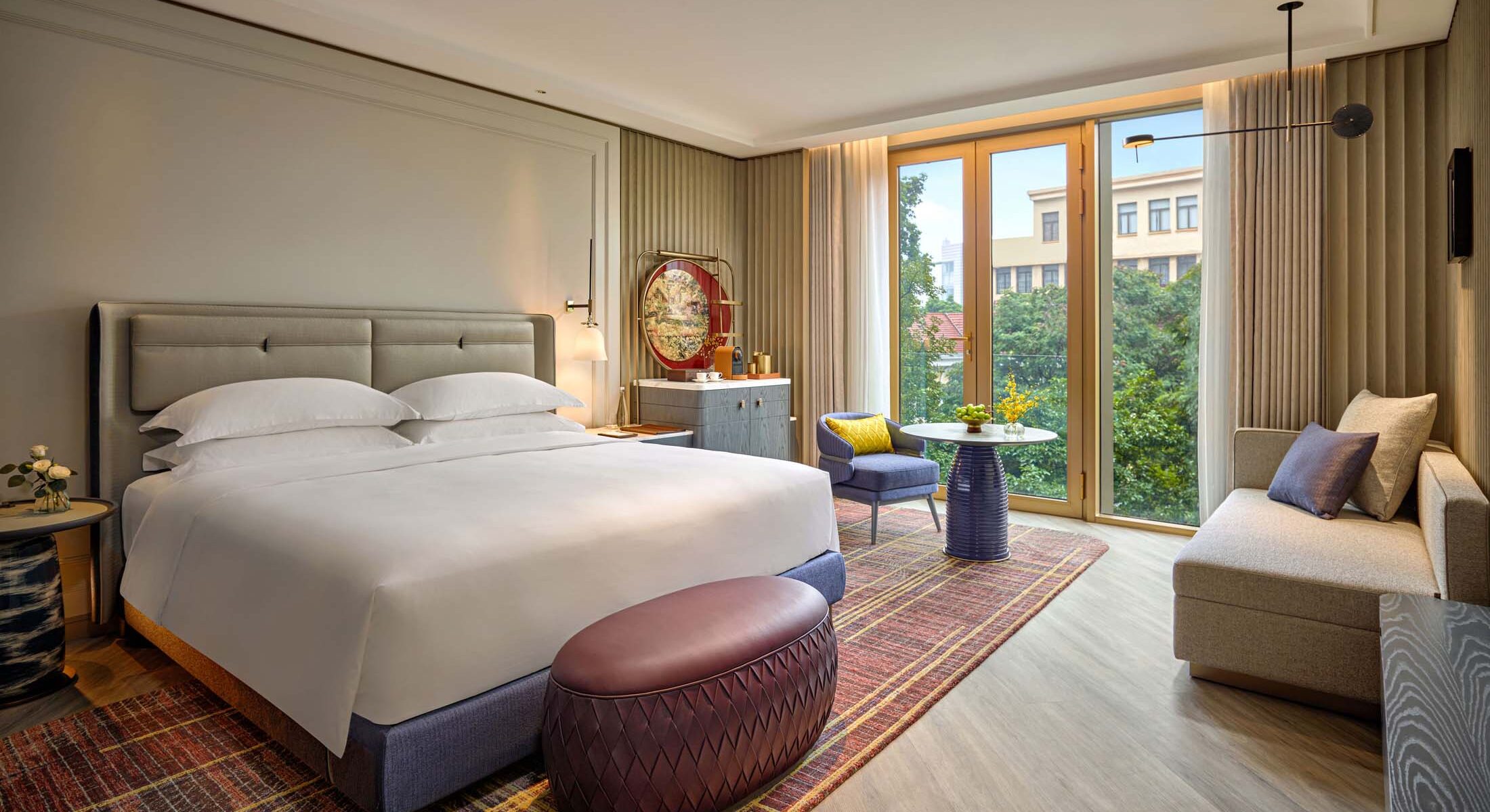 In a city that races at full tilt, your room presses pause. Whether facing the city’s vibrant streets or the quiet greenery of the inner garden, each room offers a moment of stillness wrapped in warm wood, linen-clad walls, and curated artworks. Select rooms open onto private balconies: ideal for early morning calm or a late-night cocktail in the breeze. From intimate guestrooms to expansive suites, every space is designed to hush the outside world. Most suites unlock Fairmont Gold: private check-in, a lounge in the clouds, service that knows when to appear and when to disappear.