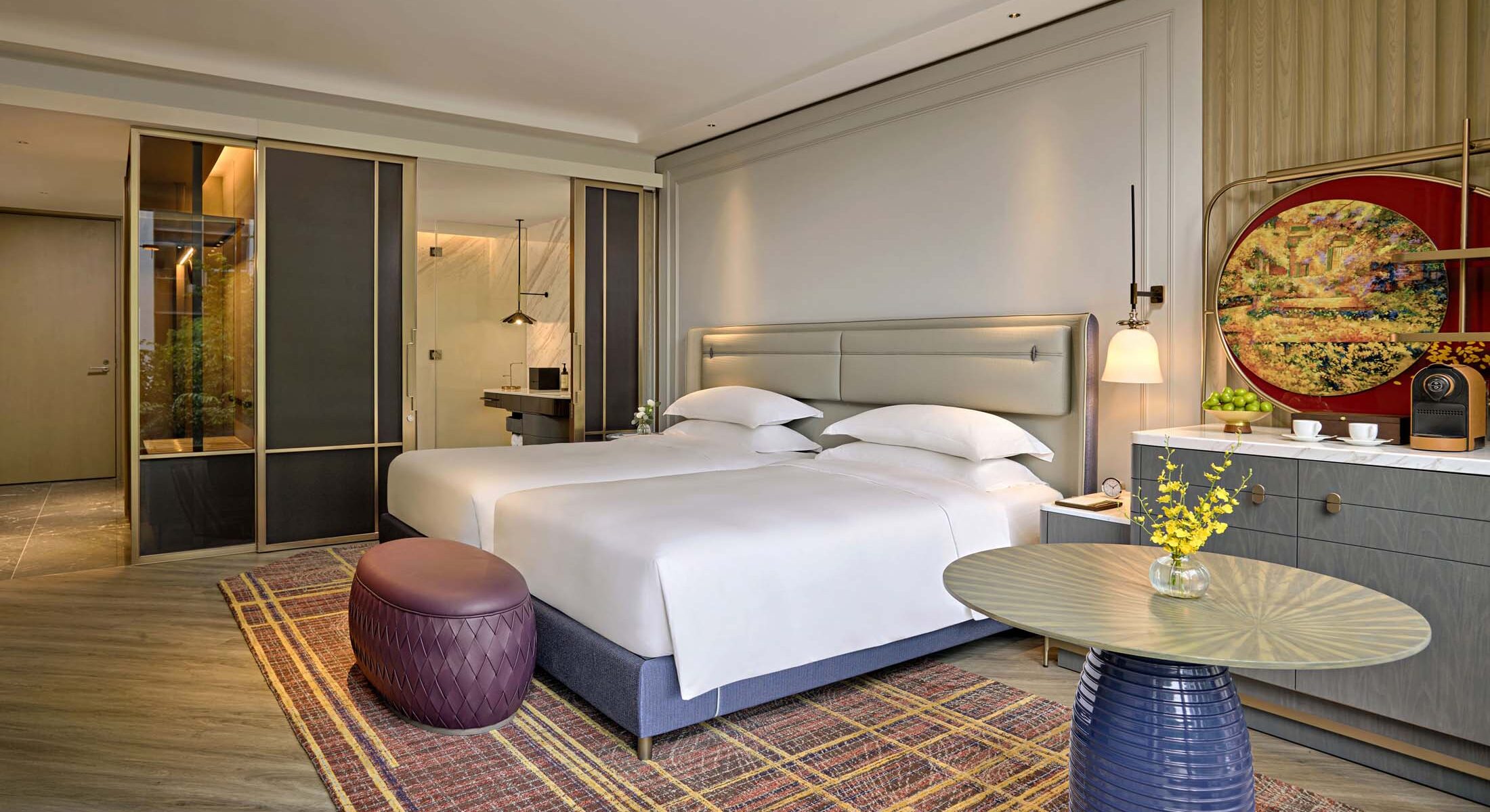 Located on the hotel’s upper floors, the Fairmont Gold King offers a quiet and refined retreat shaped with warm wood, gentle textiles, and soft natural light. A plush king bed and marble bathroom with separate shower and deep soaking tub invite unhurried relaxation. Modern comforts include Le Labo bath products, a Dyson dryer, an in room mixology set, IPTV, a Marshall speaker, and Nespresso coffee. Fairmont Gold privileges elevate the stay with private lounge access, a daily minibar refresh, late check out up to 15:00, and Golden Hours featuring cocktails and canapés.